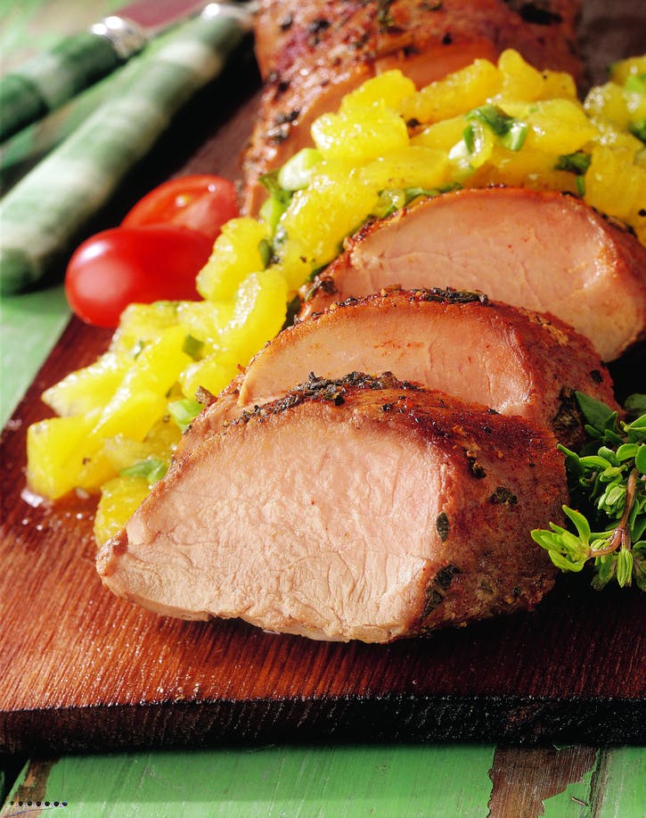 05 Mriežky na grilovanie vyčistite. Položte mäso na dosku a dosku položte na priame stredné teplo. Zatvorte veko a varte asi 1 hodinu. Ak doska začne horieť a lámať sa, posuňte ju nad nepriame teplo. Opatrne vyberte mäso a dosku z grilu a nechajte ju 5 až 10 minút odpočívať. Pečené mäso nakrájajte na plátky a podávajte so salsou.
