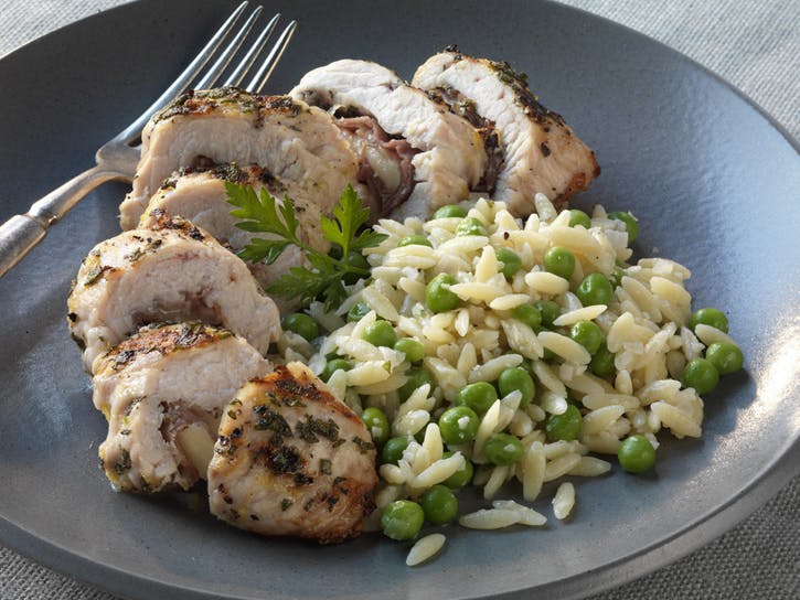 8 morčacie karé s prsiami, 4 čajové lyžičky jemne nasekané čerstvé listy šalvie 2 lyžičky jemne nastrúhanej citrónovej kôry Košér soľ Čerstvo zomleté čierne korenie syr Fontina, nakrájané na 8 prúžkov, 8 tenkých rezov prosciutto, Extra panenský olivový olej orzo – ryžová cestovina 1 šálku sušeného orzo 1 šálka jemne nasekaných šalotiek 1 lyžica čerstvo […]