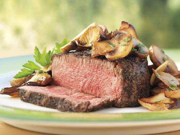 Čajom potretý filet Mignon steak s hubami