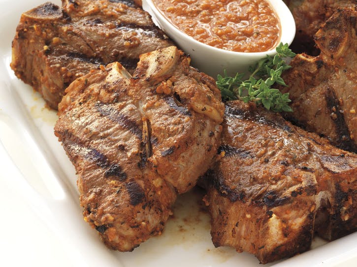 05 Mriežky na pečenie vyčistite. Grilujte kotlety na priamom ohni, so zatvoreným vekom, až kým kotlety nie sú uvarené podľa želania, asi 8 minút, otáčajte ich raz alebo dvakrát pre rovnomerné varenie.