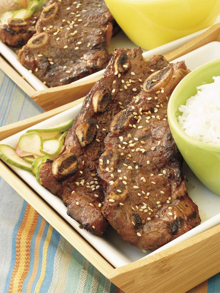04 Mriežky na grilovanie vyčistite. Jeden po druhom nadvihnite rebrá a nechajte tekutinu a pevné kúsky spadnúť späť do vaku alebo misy. Zlikvidujte marinádu. Rebrá grilujte na priamom ohni s otvoreným vekom pre drevené uhlie, ale uzatvoreným pre plynový gril, až kým nie sú pekne spálené na oboch stranách a uvarené, 3 až 5 minút, občas ich otáčajte. Vyberte z grilu a doplňte sezamovými semienkami.