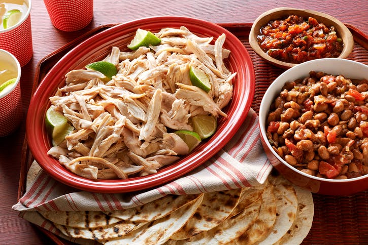 06 Kuracie mäso podávajte teplé s fazuľami, tortillami, salsou a limetkovými klinmi.