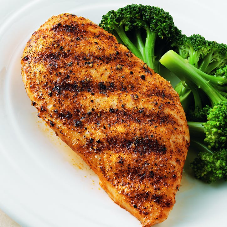 03 Grilovacie mriežky vyčistite. Kuracie prsia grilujte na priamom a strednom ohni so zatvoreným vekom, kým nie je mäso na dotyk pevné a už nie je ružové v strede, 8 až 12 minút, otáčaním raz alebo dvakrát. Vyberte z grilu a nechajte ho pôsobiť 3 až 5 minút. Podávame teplé.