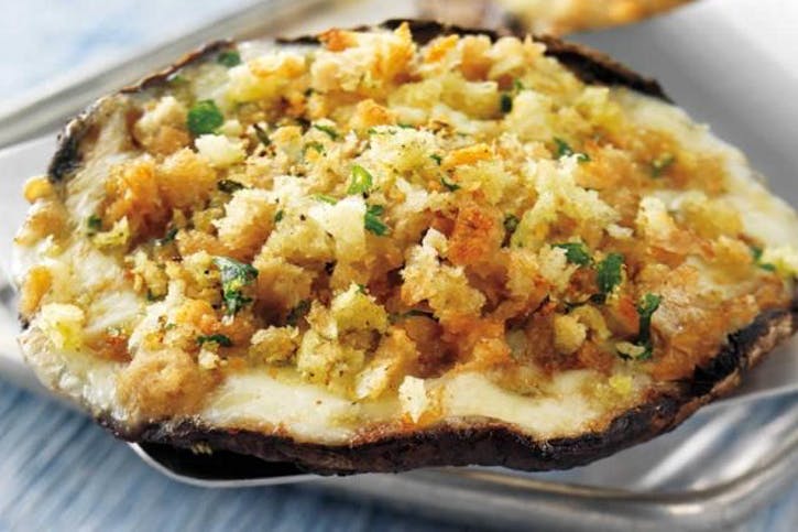 05 Mriežky na čistenie vyčistite. Huby grilujte, žiabrovými stranami dolu, na miernom ohni so zatvoreným vekom, kým nezačnú zmäknúť 4 až 6 minút. Z dosiek opláchnite zvyšky marinády, otočte ich, otočte ich, pridajte top šálky syra na vrch každej hríby, zavrite veko a varte do mäkka, keď ich prepichnete nožom, 4 až 6 minút. Počas poslednej minúty varenia položte zmes strúhanky rovnomerne na každú hubu. Vyberte z grilu, dochutíme korením a soľou a ihneď podávame.