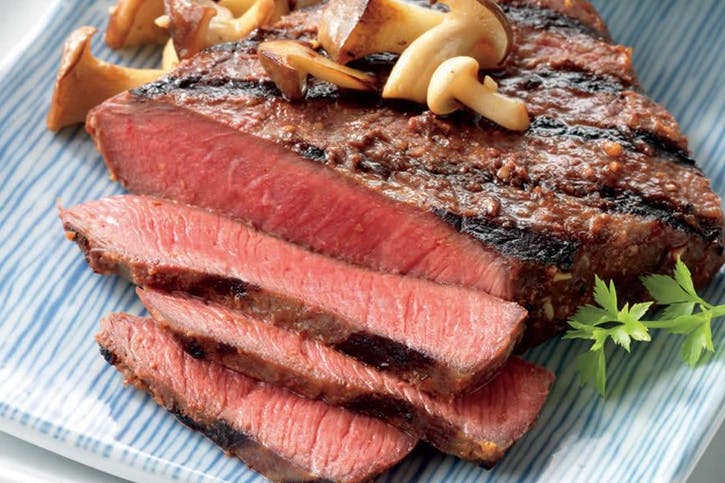 02 Vyberte steaky z misky a marinádu zlikvidujte. Pred grilovaním nechajte steaky stáť pri izbovej teplote 15 až 30 minút.