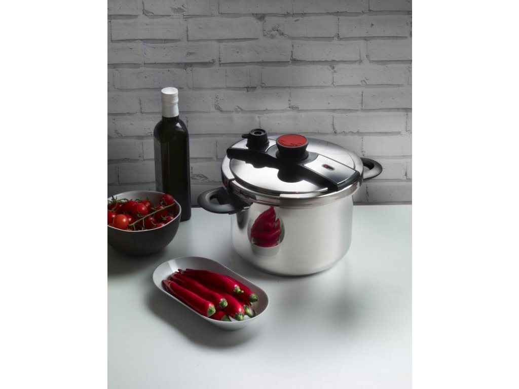 Tlakový hrniec PRO, vyrobený z kvalitnej nehrdzavejúcej ocele 18/10, kombinuje moderný a súčasný dizajn s najmodernejšou technológiou. Jeho špeciálny systém zatvárania umožňuje otvoriť a zavrieť hrniec iba jednou rukou. Trojvrstvové dno s tepelným difuzérom, dva stupne tlaku a trojitý bezpečnostný systém robia z tohto tlakového hrnca dokonale funkčného, ľahko ovládateľného pomocníka, ktorý sa okamžite stane nevyhnutnou súčasťou každej kuchyne.