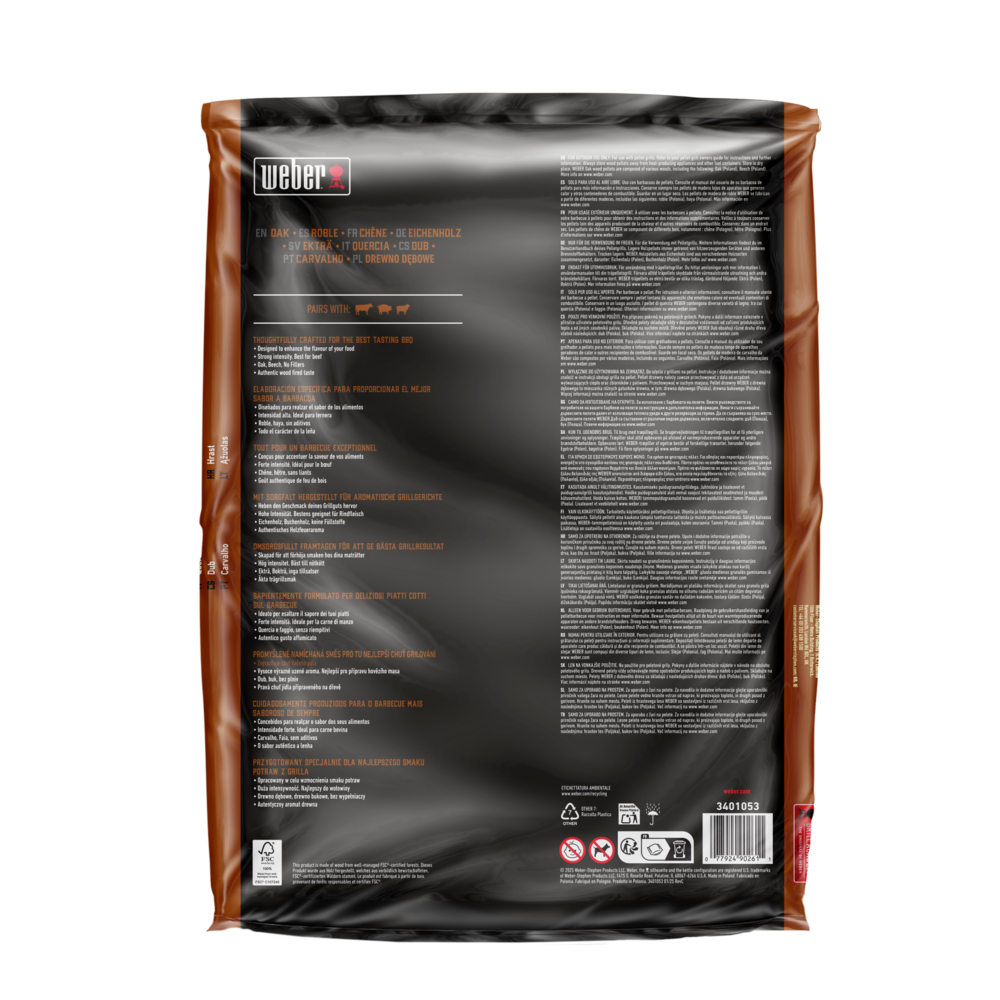 Weber prírodné drevené pelety Dub boli starostlivo vyrobené pre najlepšiu chuť grilovania. Navrhnuté na zvýraznenie chuti Vášho jedla bez plnív, čistá autentická chuť dreva.