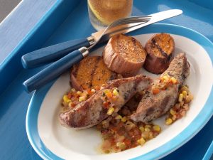 2 bravčové panenky, koža a prebytočný tuk odstránený 8 plátky slaniny (nie hrubé) Košér soľ [...]
