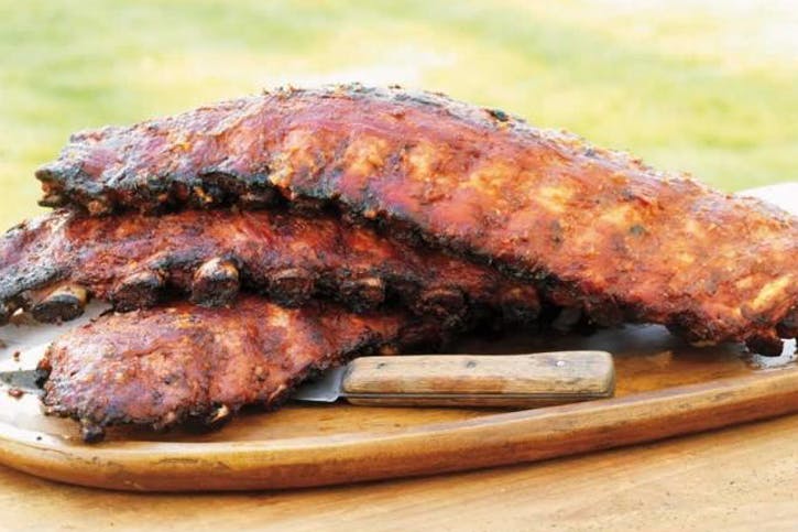 04 Mriežky na varenie vyčistite. Rebrá stohujte na seba tak, aby kosti boli obrátené nadol a grilujte na nepriame nízkej teplote so zatvoreným vekom po dobu 45 minút.
