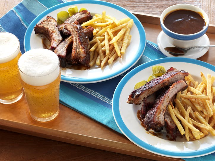 07 Vyberte rošty z grilu a jemne ich potrite po oboch stranách omáčkou. Vráťte stojany na gril a varte na nepriamom nízkom ohni so zatvoreným vekom, kým povrch nie je mierne chrumkavý, 10 až 15 minút, občas otočte. Vyberte z grilu a nechajte pôsobiť 5 až 10 minút. Rozrežte stojany medzi kosťami na jednotlivé rebrá a podávajte teplé so zvyšnou omáčkou.