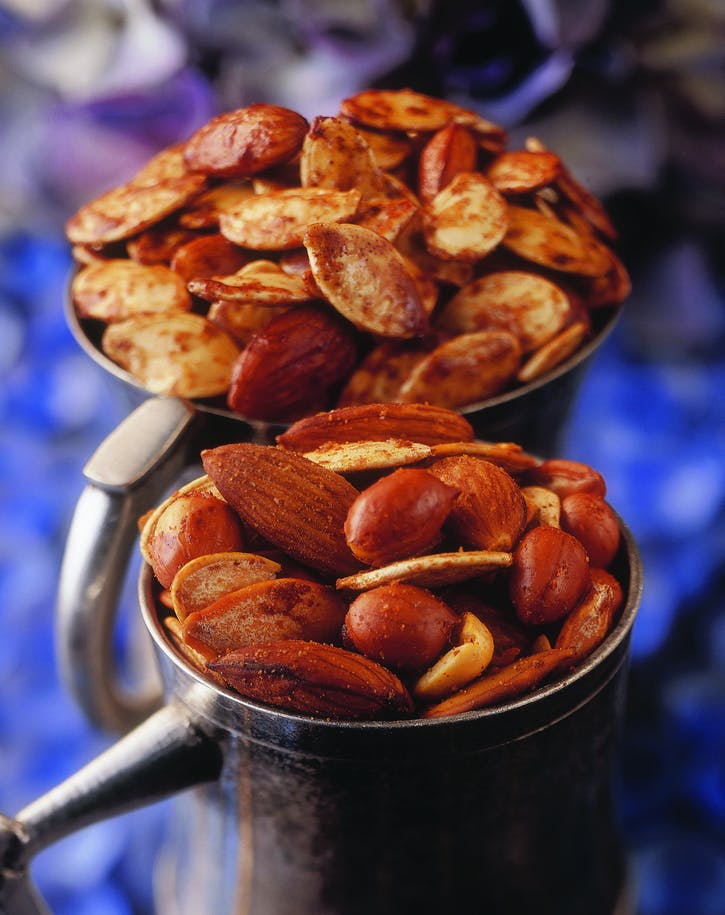 V malej miske šľahajte zvyšné ingrediencie na pikantné grilované orechy. Zamiešajte zmes cez orechy a premiešajte. Panvicu vráťte na gril na nepriame nízke teplo, zatvorte veko a varte ďalších 5 až 7 minút za stáleho miešania raz alebo dvakrát. Vyberte z grilu a nasoľte matice na papierové utierky. Nechajte vychladnúť. Ak neslúži okamžite, skladujte ho vo vzduchotesnej nádobe.