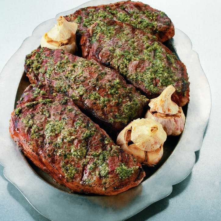 06 Steaky grilujte na priamom horúcom mieste so zatvoreným vekom, kým nie sú uvarené podľa želania, 6 až 8 minút, raz alebo dvakrát otočte (ak dôjde k vzplanutiu, dočasne posuňte steaky z nepriameho tepla). Vyberte z grilu a nechajte ho pôsobiť 3 až 5 minút. Podávame teplé.